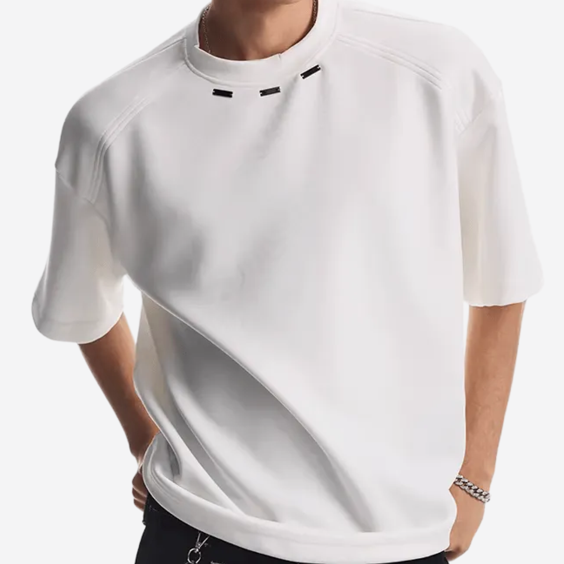 Футболка оверсайз с металлическими деталями - белая